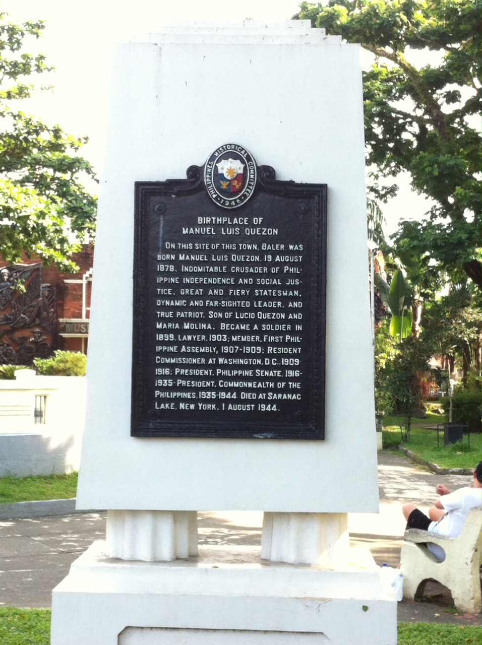 Previous Image Next Image Historical Marker, Birthplace of Manuel Quezon Manuel L. Quezon, Indomitable crusader of Philippine Independence Historical Marker, Birthplace of Manuel Quezon